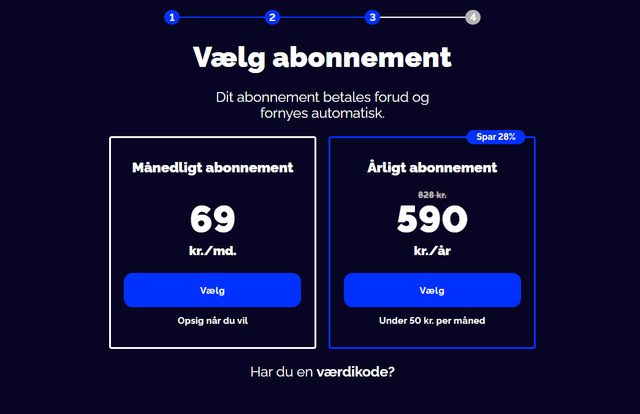 4. Klik på Har du en værdikode? under abonnementstyperne