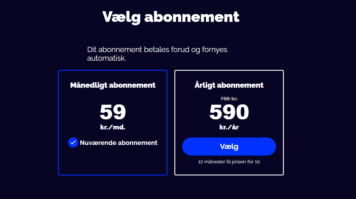Du kan altid holde øje med hvilket abonnement du aktuelt har under Min konto.