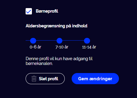 Du kan under "Profiler" se om en profil er en børneprofil. Det ser du ved at klikke Rediger på den aktuelle profil. Du kan også redigere profiler.