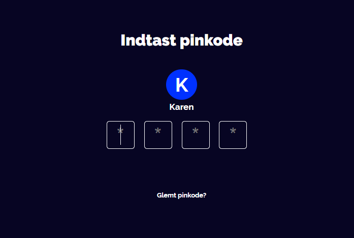 Pinkoden skal indtastes hver gang der skiftes fra en børneprofil til en voksenprofil, på hjemmesiden eller appen.