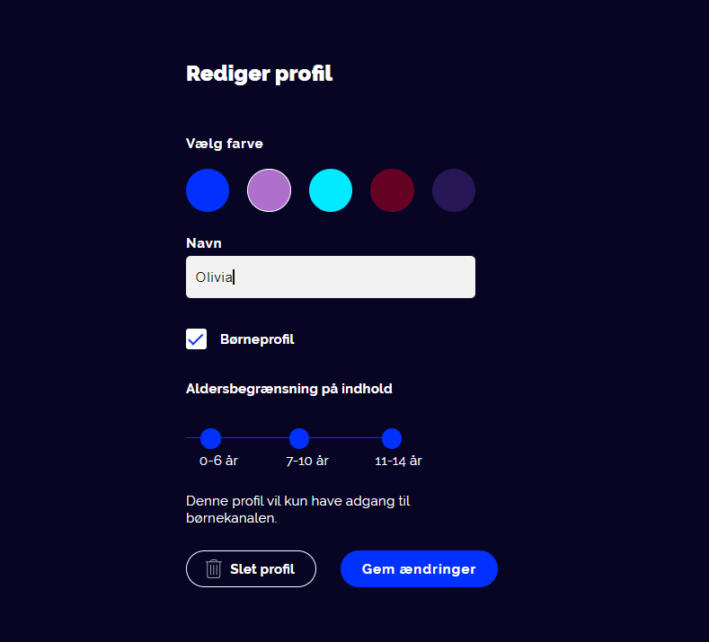 Opretter du børneprofiler skal du angive alder på barnet, og der vil her udelukkende blive vist indhold som passer til alderen.