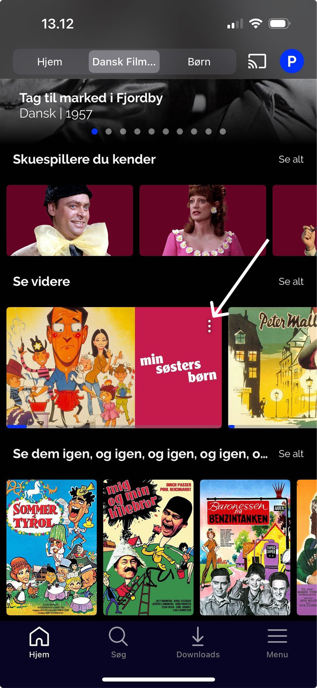 - Klik på de tre prikker i højre hjørne af filmen og vælg "Fjern fra Se videre"